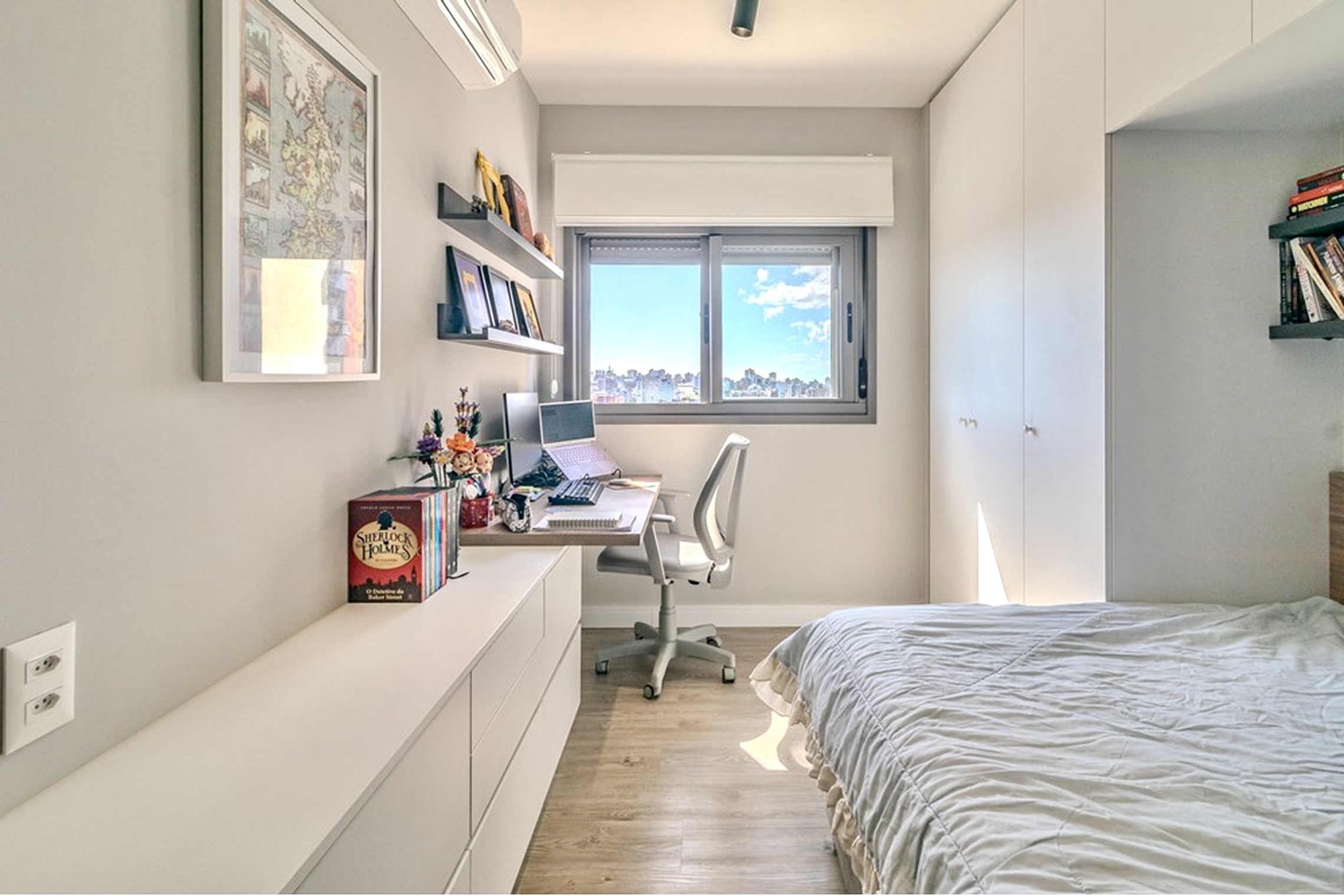 O imóvel é totalmente projetado sob medida, com móveis fixos de excelente qualidade, splits instalados e churrasqueira parrilla.