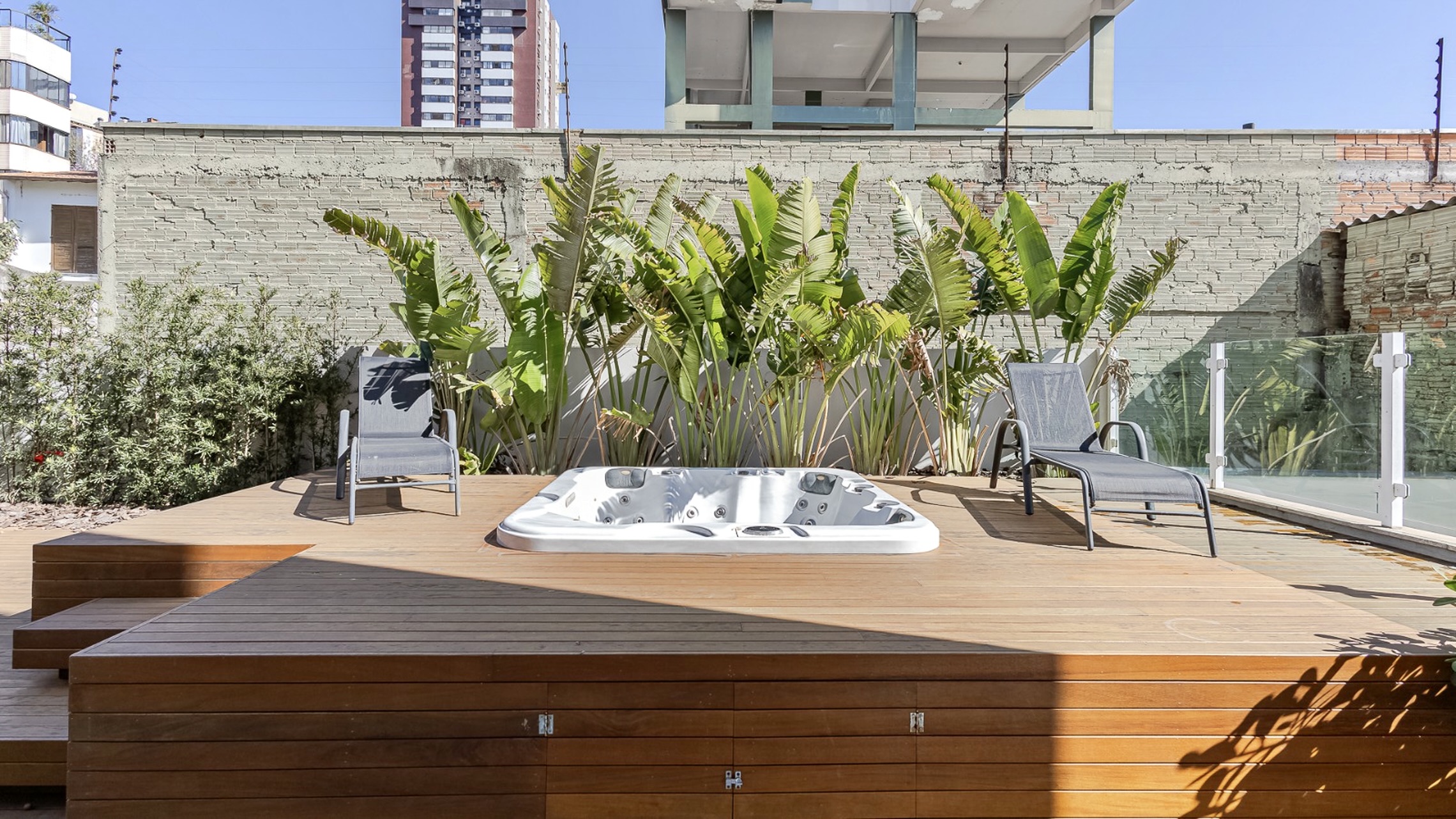 O apartamento apresenta terraço, área para banho de sol com jacuzzi, além de living para 2 ambientes, churrasqueira e lareira.